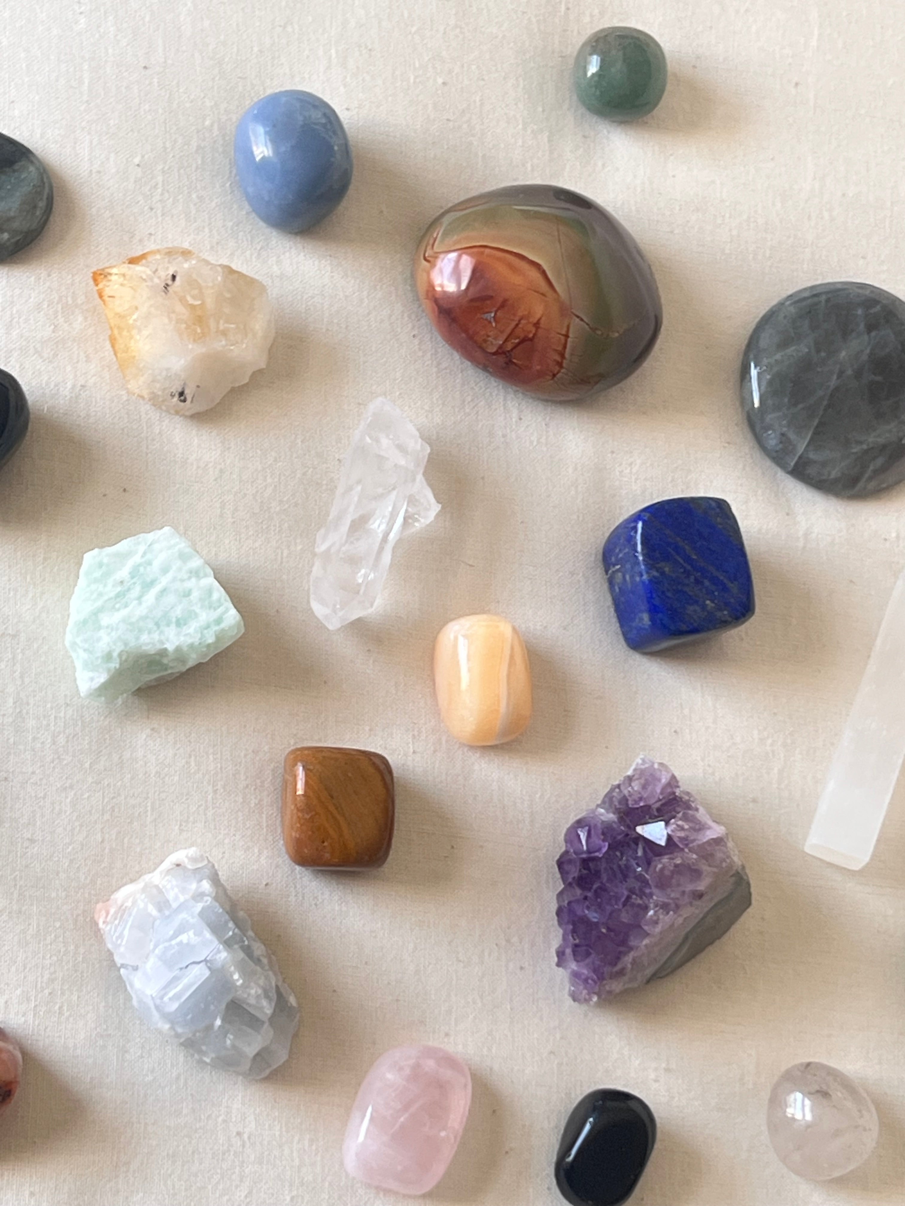 Crystals and semi-precious gemstones chosen to support balance and mindful living.